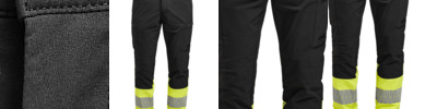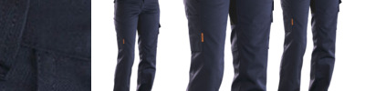 90% polyester/10% elastane. Four-way stretch microfibre. Anti-static properties. Flat front waistband, elasticated rear with inner drawcord. Two side zip pockets. Rear zip pocket. Rear yoke panel with centre seam. Tapered leg. Tear out label.