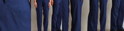 95% nylon/5% elastane. Stretchchecker fabric for comfort and movement. Durable and lightweight. Hidden elasticated waistband. Belt loops. Concealed zip fly with button over. Two side pockets. Rear patch pockets. Right leg pocket.